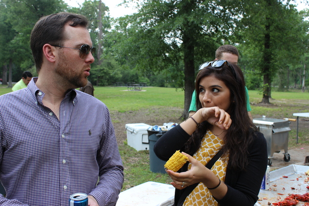 With little Putt on the way, Daniel and Maria had a crawfish boil at a rented pad in Memorial Park of Houston.