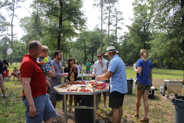 With little Putt on the way, Daniel and Maria had a crawfish boil at a rented pad in Memorial Park of Houston.