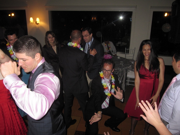 Group of people in formal dress dancing at a party indoors.