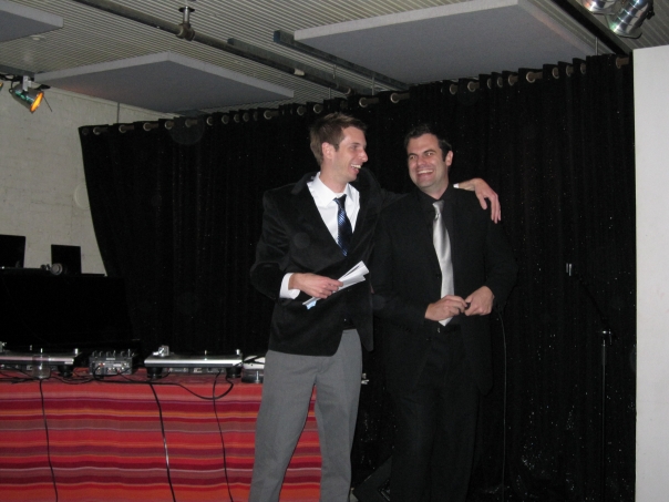 Everyone was encouraged to dress up and so of course I rented a white tux and showed up looking like a pimp. I also brought Tiffany as my date who was definitely dressed to impress in her stunning blue dress.