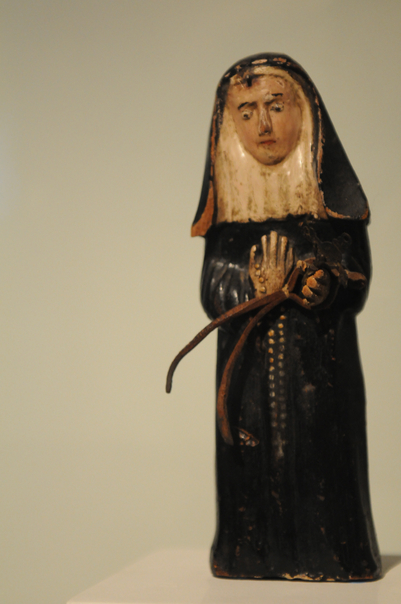 This antique woman figurine is an example of the standing in meditating mode. |