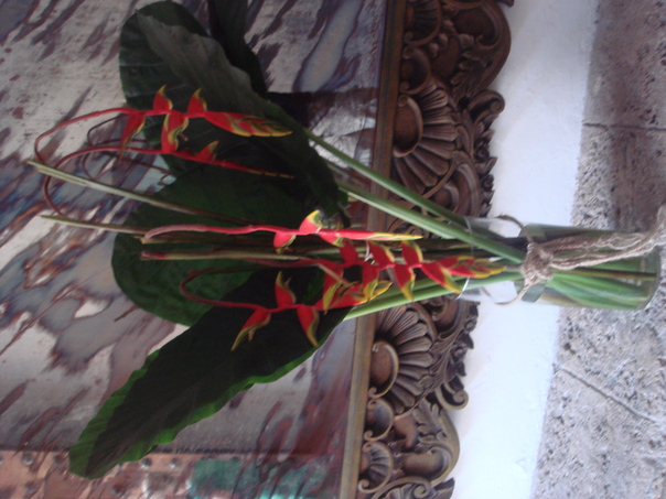 Beautiful flowers in a vase on a mantle in front of a picture.