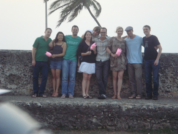The group of young college roommates posed for a photograph after their final class of the year. |