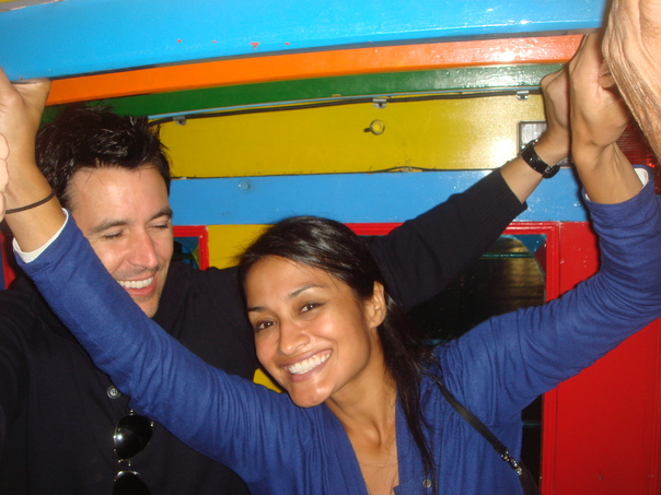 A woman is enjoying a ride on a crowded public transport. |
