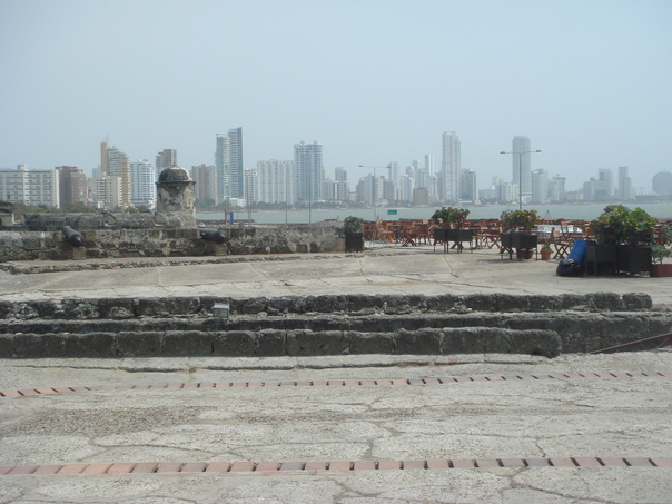This is a picture of the city and the distance that is very foggy