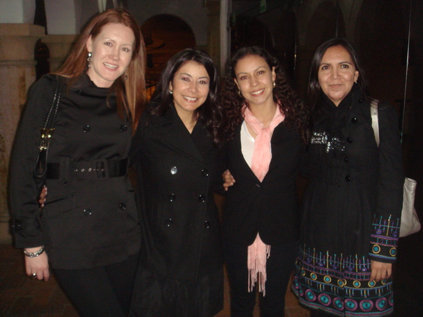 Four friends or co-workers pose for a photo while smiling nicely for the camera. |
