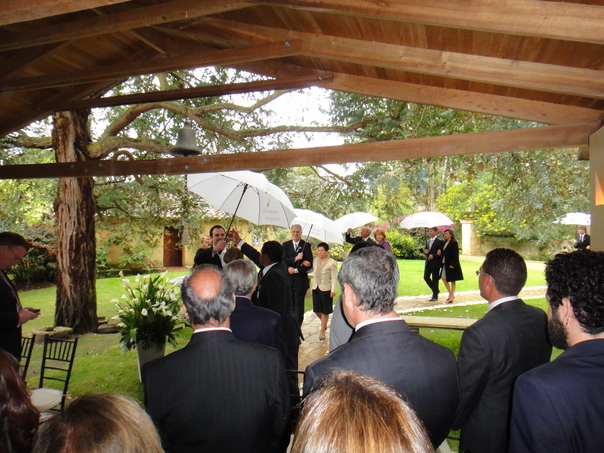 One section of the schedule, having the cast of a wedding holding up white umbrellas in a line. |