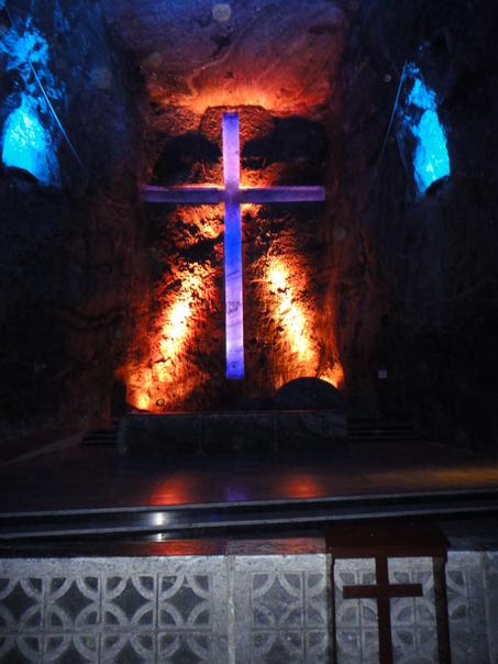 There is a small cross on a tile and a big cross laying in the dirt. |