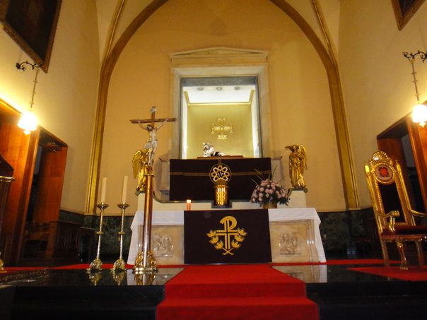 This is a picture of an inside of a church and there are some very tall candles in the picture. |