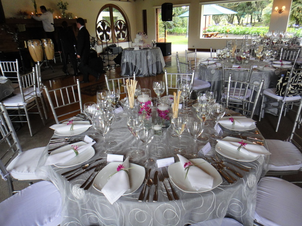 This picture is of an elegant guest table with place settings for wedding guests. |