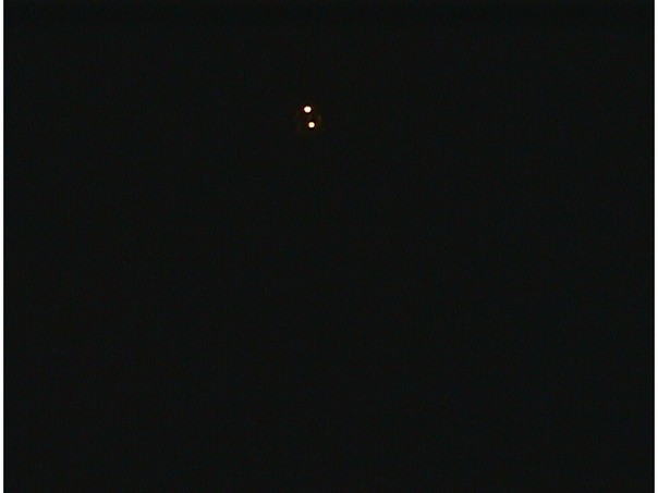 The two golden lights glowed in the distance while everything else stayed pitch black.