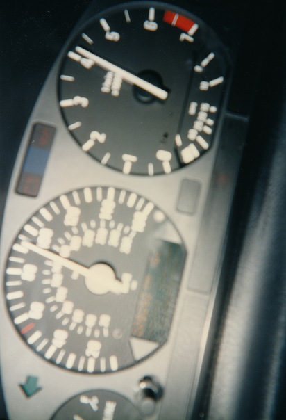 The odometer panel on a car showing a current speed of approximately 91 miles per hour. |