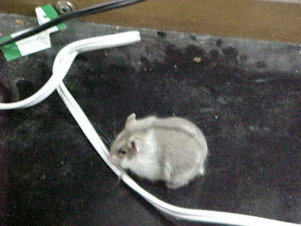 The gray mouse stealthily began to chew through the thick cord.