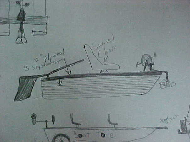 A child's drawing of two boats with words pointing parts on the points. Draw and written in pencil.