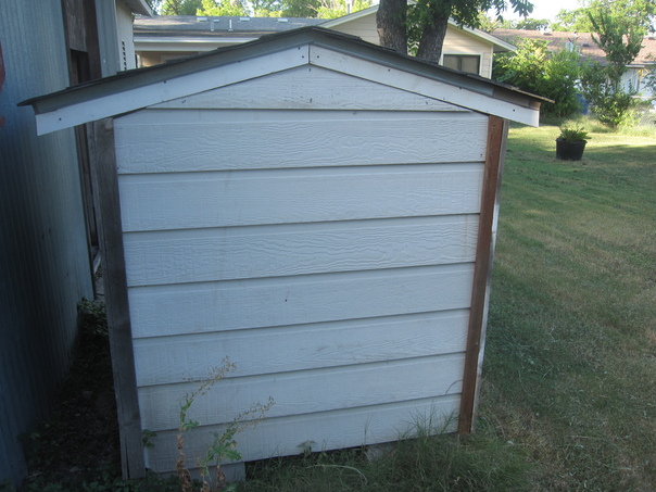 A small shed located on a freshly moved lawn. Cozy but roomy, this older shed can store a great deal of items as a compliment to your garage.