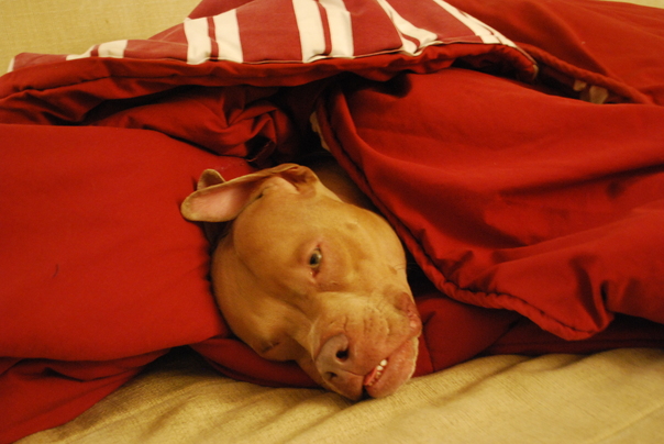 The Dog Is In the bedsheet because of the cool.