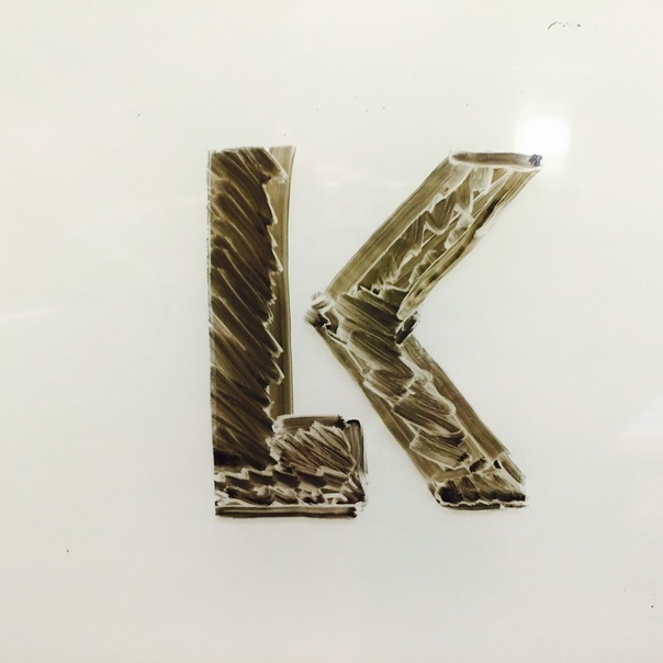 an wooden design mentioning the alphabet L and K