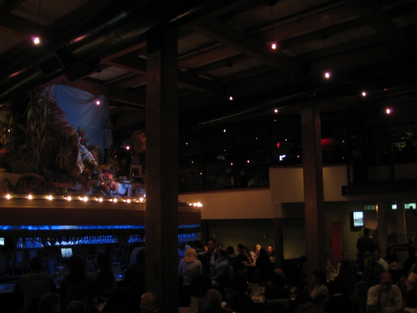 It looks like everyone is enjoying their self at a restaurant. It has a upstairs and downstairs area.
