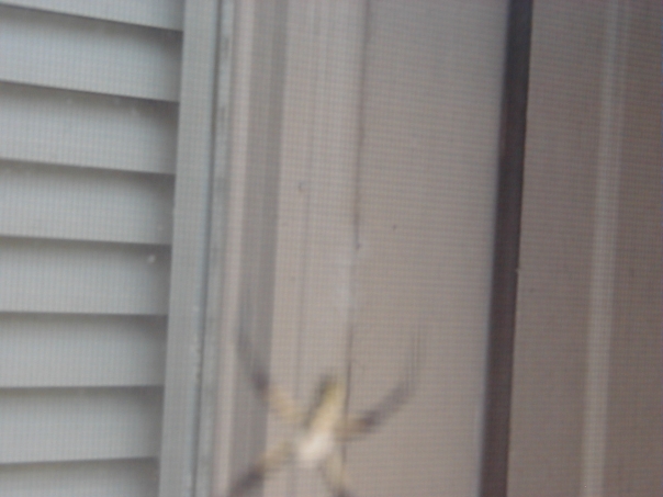 A blurry close-up view of a spider against the window of a home.