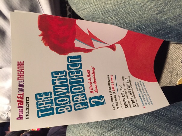 A red white and blue theater bill advertises an upcoming rock and roll performance play.