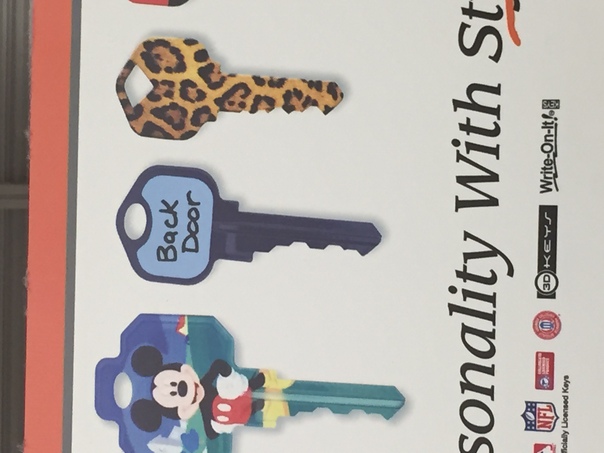 A row of colorful house keys being advertised by numerous, famous advertisers.