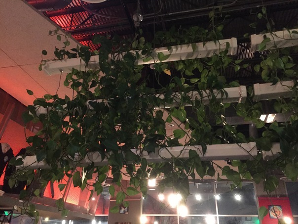 This new bar and restaurant uses lots of indoor plants to make the space seem full of life.