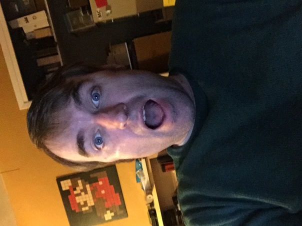 The Caucasian man in the photo has five visible orifices: mouth, a pair of eyes and a pair of nostrils.