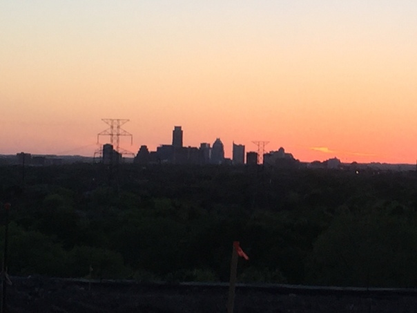 This is a picture of a city skyline during a sunset.