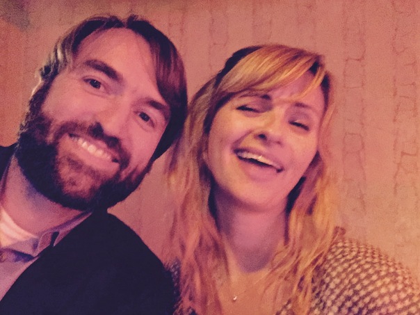 A man with beard and the woman with blond hair are posing for a picture