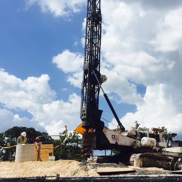 There is a drill being ready to drill through the ground.