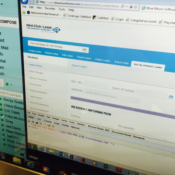 Resident information page of a leasing company asking for various details regarding terms of lease.