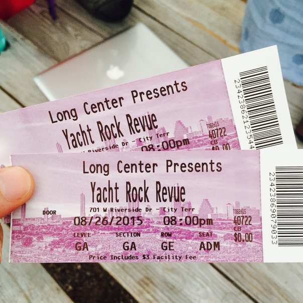 two tickets to the Yacht Rock Revue on the date of August 26, 2015