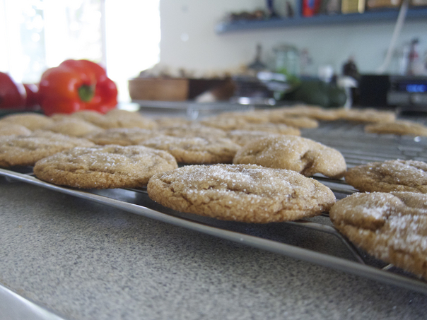 Sugar cookies cooling on a drying rack in a clean kitchen.