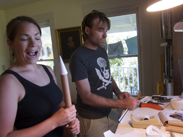 They young couple gathered around the dining room table as they did arts and crafts.