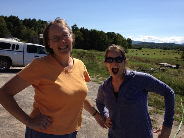 The two women made funny faces as they tried to decide what path to jog on.
