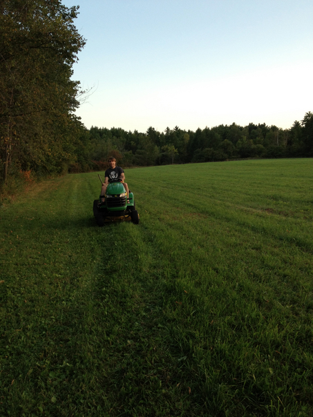 A man using a Riding Lawn Mower to manicure the large amount of acreage on his property.