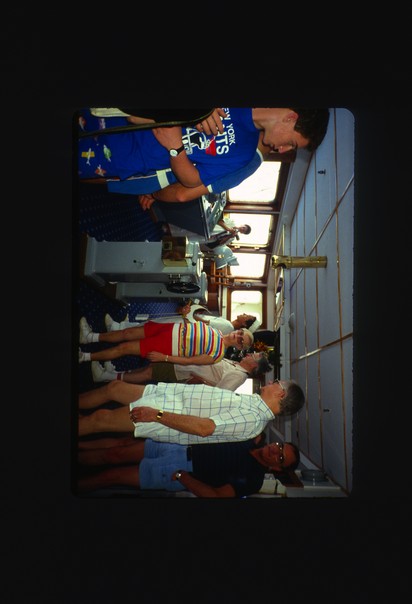 This Picuture is taken on the Boat which is on the Sea. And the people here gather about to Search |