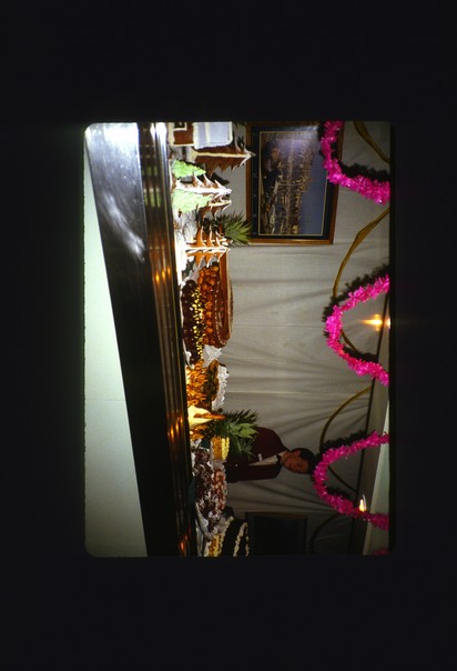 IT IS A PHOTO OF A RESTAURANT IN WHICH A MAN IS STANDING