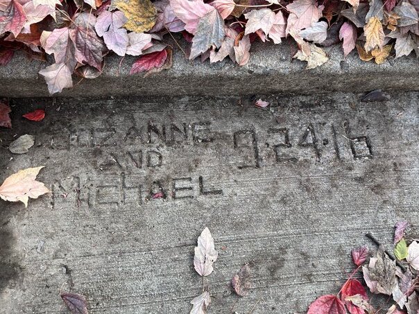 I had to purchase a small chisel and mallet set at Home Depot and then slowly work my way through the entirety of the etching so that I could remove the old words carved in and fill it with concrete filler.