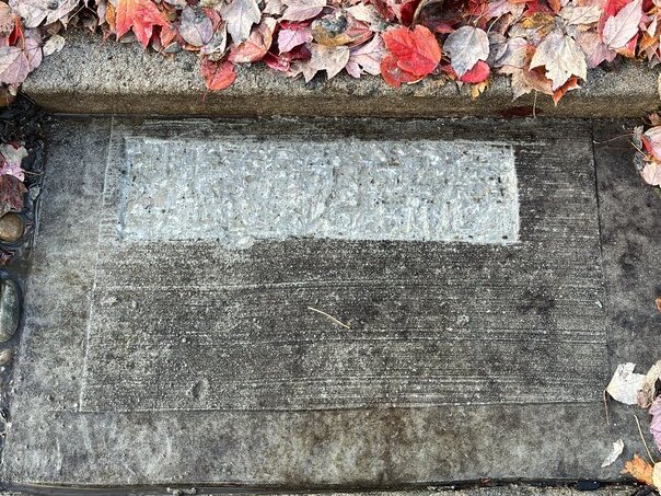 I had to purchase a small chisel and mallet set at Home Depot and then slowly work my way through the entirety of the etching so that I could remove the old words carved in and fill it with concrete filler.