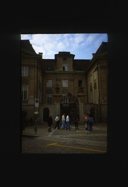 In this picture some peoples are walking infront of the building.