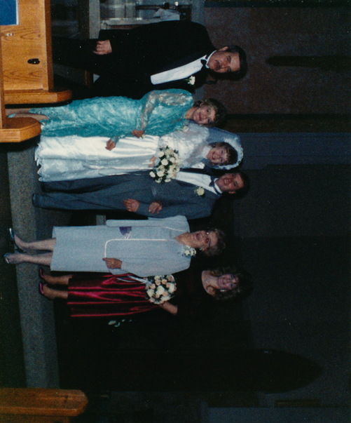 Their wedding day was fantastic, surrounded by family members. |
