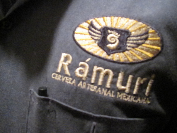 The photo shows the shoulder of a shirt with a patch that has an embroidered sun and wing symbol with the words Ramuri Cervelo Arteranal Mexicano under it.