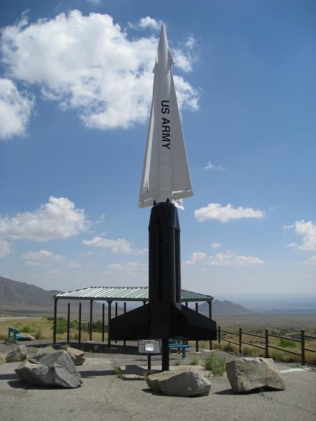 rocks, display, rocket, white, black, fence, sky, clouds, blue, pavilion, landscape, Army,