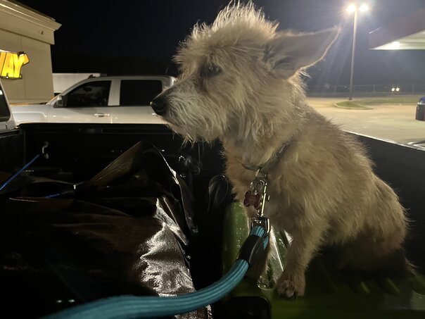 About halfway through the trip and somewhere in Louisiana, we stopped for some gas and caffeine and Rachel came upon a stray cat that was dumpster diving. Always the lover of felines, she grabbed some canned tuna for said cat and we spent a short while making sure it had a meal.