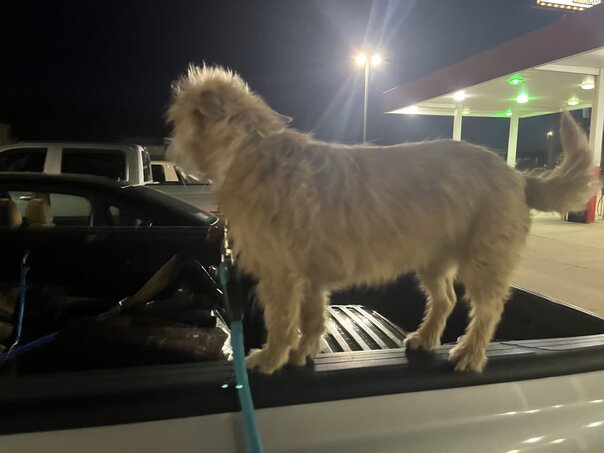 About halfway through the trip and somewhere in Louisiana, we stopped for some gas and caffeine and Rachel came upon a stray cat that was dumpster diving. Always the lover of felines, she grabbed some canned tuna for said cat and we spent a short while making sure it had a meal.