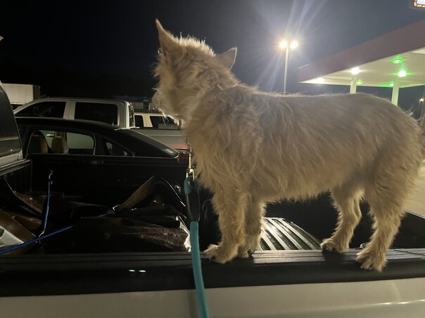 About halfway through the trip and somewhere in Louisiana, we stopped for some gas and caffeine and Rachel came upon a stray cat that was dumpster diving. Always the lover of felines, she grabbed some canned tuna for said cat and we spent a short while making sure it had a meal.