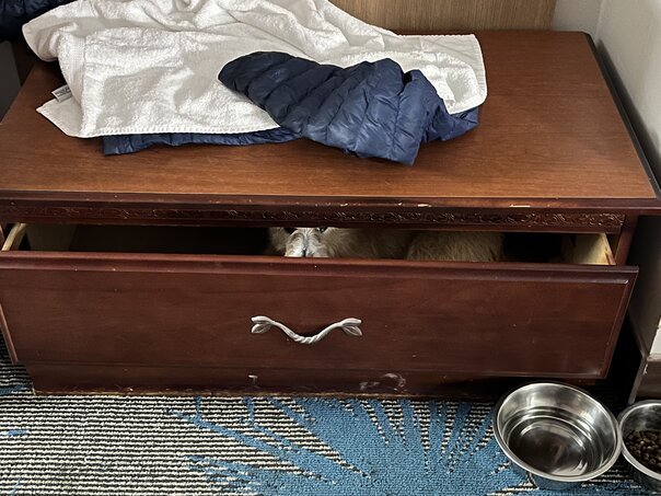 About halfway through the trip and somewhere in Louisiana, we stopped for some gas and caffeine and Rachel came upon a stray cat that was dumpster diving. Always the lover of felines, she grabbed some canned tuna for said cat and we spent a short while making sure it had a meal.