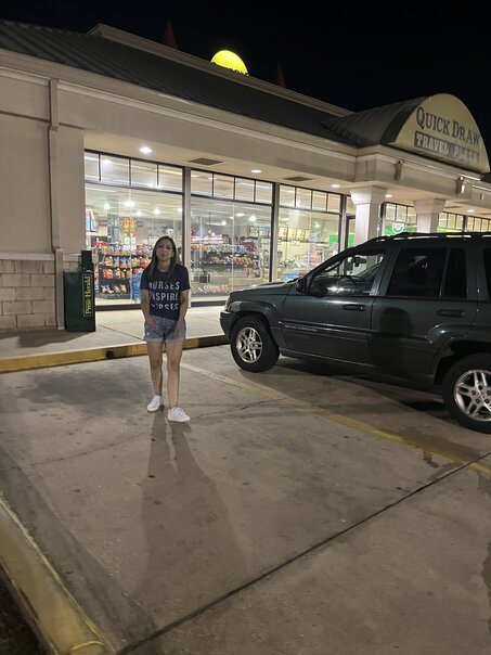 About halfway through the trip and somewhere in Louisiana, we stopped for some gas and caffeine and Rachel came upon a stray cat that was dumpster diving. Always the lover of felines, she grabbed some canned tuna for said cat and we spent a short while making sure it had a meal.