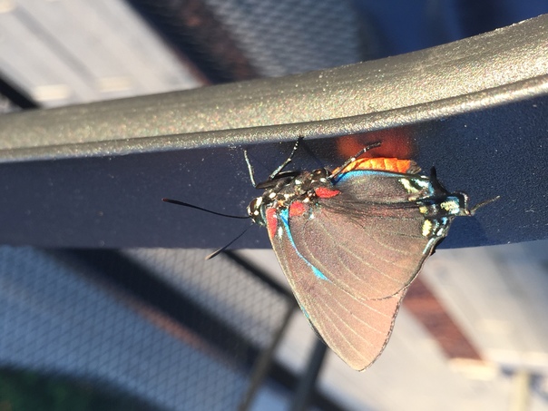 A beautiful butterfly is sitting upside down perfectly still enough for this to be taken.